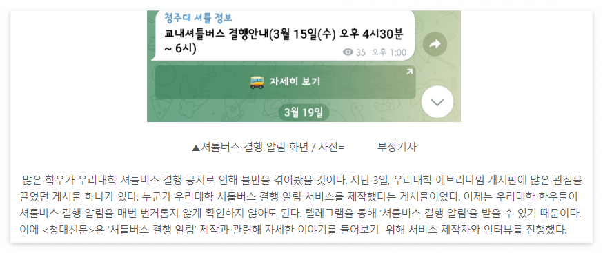 공익적인 일을 해서 일까, 감사하게도 학교 내 언론사에서 인터뷰 요청이 들어왔다.